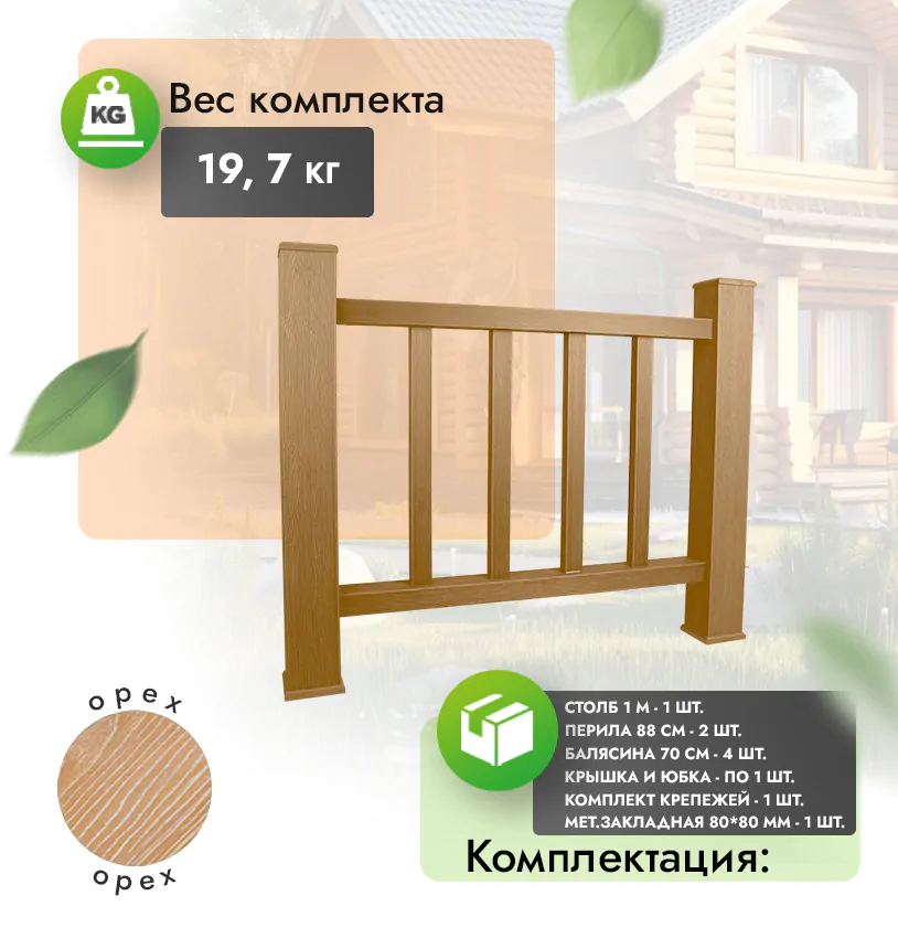 Изделия представляют собой конструктивные элементы или полностью готовые ограждения для террасы, крыльца, лестницы, балкона, входной группы, мостиков, тротуаров, пирсов, декоративных элементов ландшафта. Использовать террасные ограждения из МПК очень удобно. Они красивы, практичны, не требуют сложного ухода и более всего подходят для уличных условий эксплуатации. Ведь декинг создавался именно для этих целей, как прочный, надежный материал, устойчивый к капризам природы.